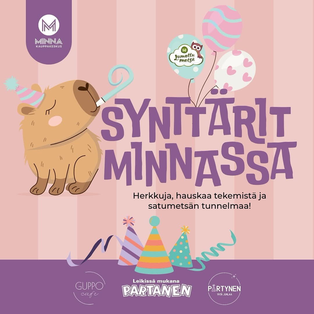 Herkkuja, leikkiä ja satumaisia juhlia keskellä Kauppakeskus Minnaa. Tervetuloa viihtymään tai varaamaan ikimuistoiset synttärit!
